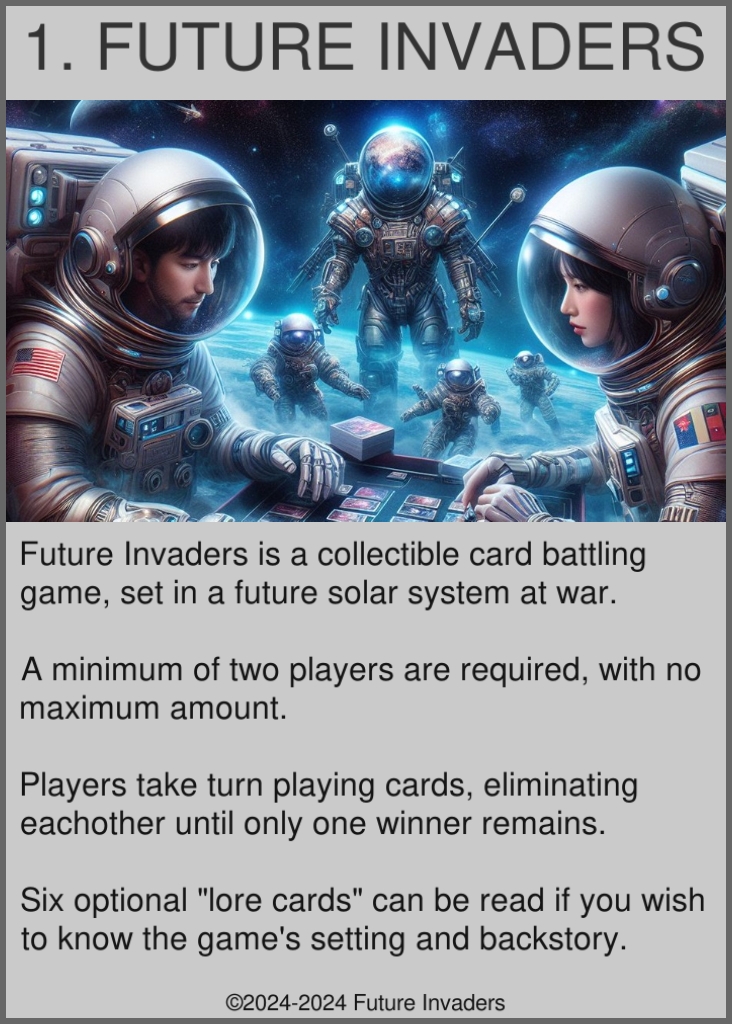 Future Invaders is a card game for two or more players.
