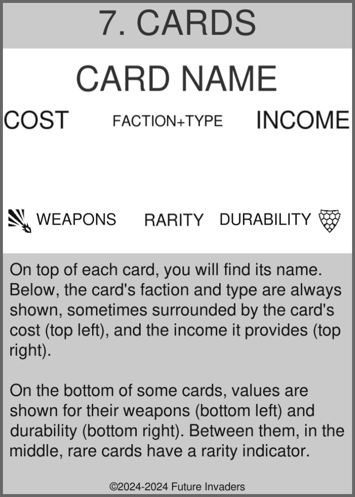 The rules of Future Invaders are purposefully few and simple compared to most other collectible card games. The core gameplay loop might be easy to learn, but it includes enough tactical depth to make it hard to master.