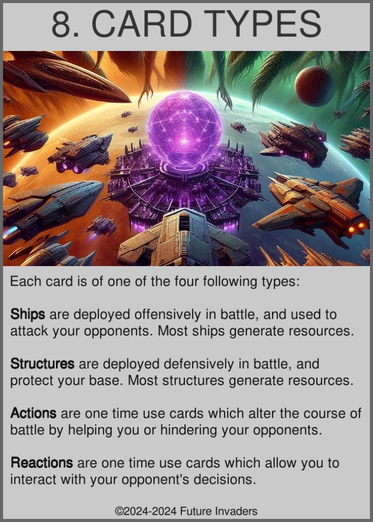 Type: There are four possible card types: Ship, Structure, Action, and Reaction.